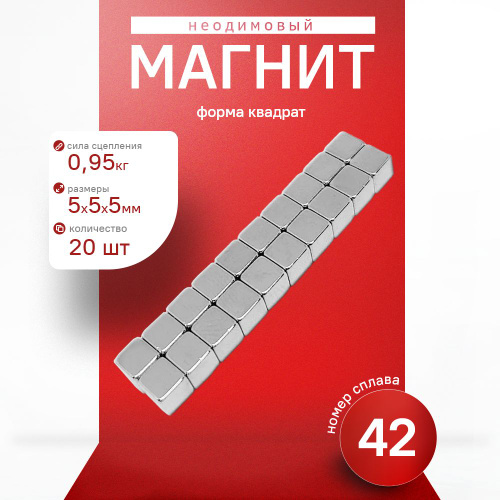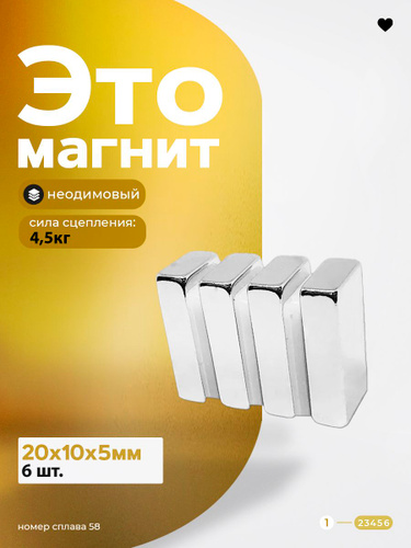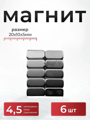Неодимовый Магнит прямоугольник 20х10х5 мм. 6 штуки Сплав N58
