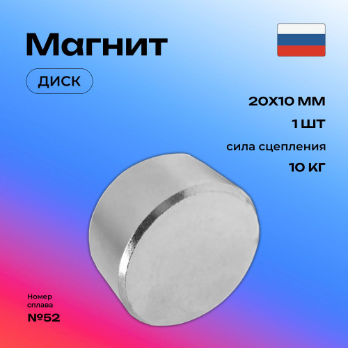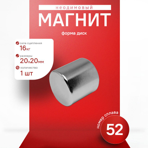 Неодимовый Магнит 20х20 мм диск 1 шт