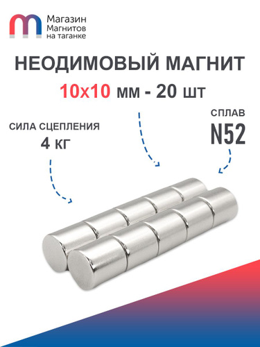 Неодимовый магнит усиленный диск 10х10 мм (N52) - 20 шт