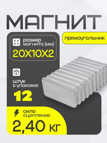 Магнит прямоугольный 20х10х2 мм 12 шт