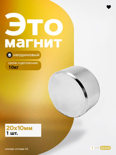 Неодимовый магнит диск 20х10 мм для доски канцелярский 1 штука
