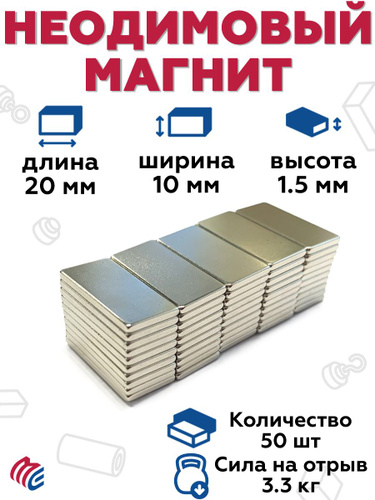 Неодимовый магнит 20мм*10мм*1.5мм - 50 штук