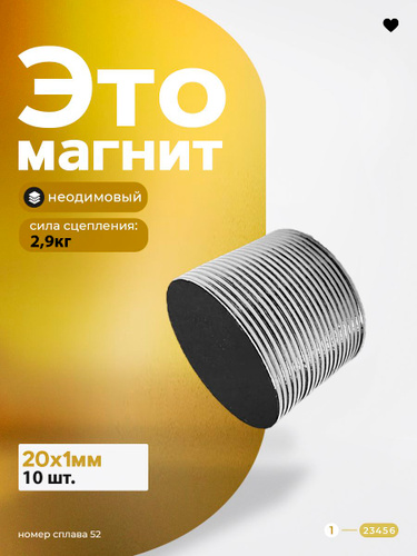Неодимовый магнит диск 20х1 мм для доски канцелярский 10 штук набор
