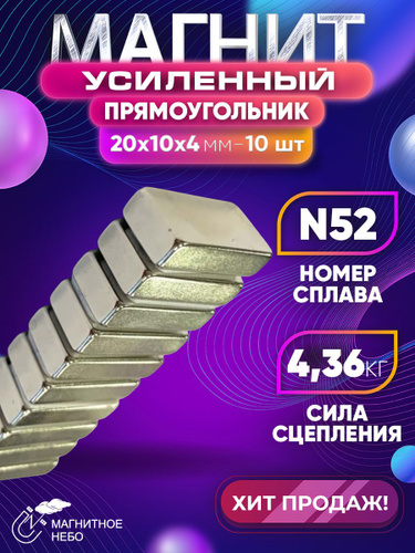 Магнит усиленный прямоугольник 20х10х4 мм - 10 шт, мощный