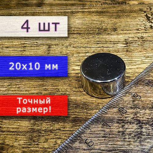 Неодимовый магнит универсальный мощный для крепления (магнитный диск) 20х10 мм (4 шт)