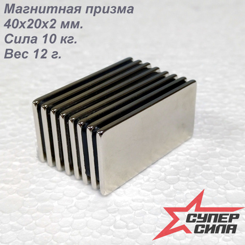 Магнит неодимовый, призма 40х20х2, 10 шт.