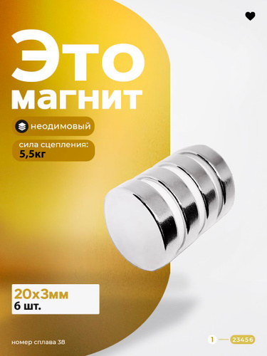 Неодимовый Магнит диск 20х3 мм 6 штуки Сплав N58