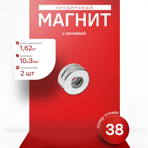 Неодимовый Магнит диск с зенковкой 10ммх3 мм 2 шт