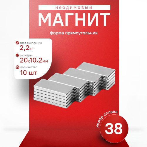 Магнит прямоугольный 20х10х2 мм 10 шт