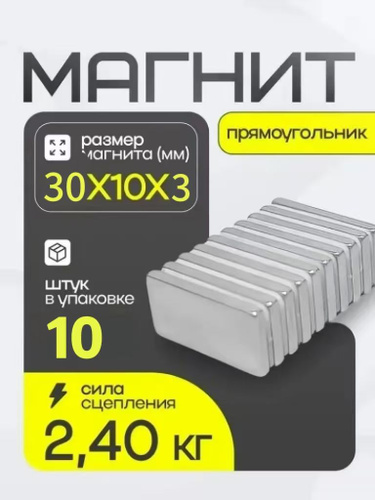 Магнит прямоугольный 30х10х3 мм 10 шт