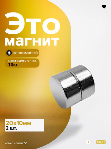Неодимовый Магнит 20х10 мм диск 2 шт сплав N58