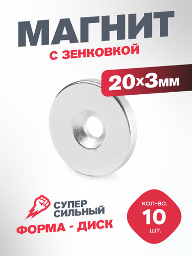 Магнит с зенковкой, диск 20х4х3мм, под болт/саморез, комплект 10шт