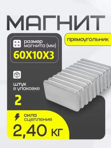 Магнит прямоугольный 60х10х3 мм 2 шт