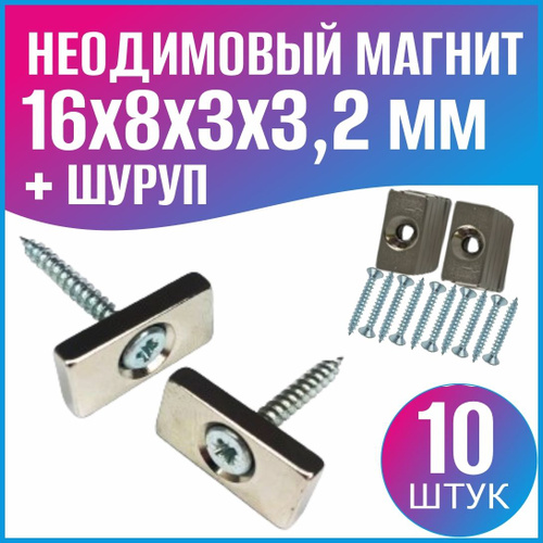 Неодимовый магнит 16х8х3х3,2мм - 10шт.