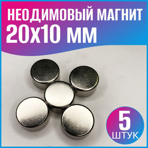 Неодимовый магнит диск 20х10 мм, N35 - 5шт.