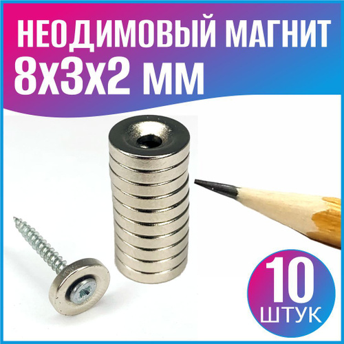 Неодимовый магнит с зенковкой 8xd3x2 - 10шт.