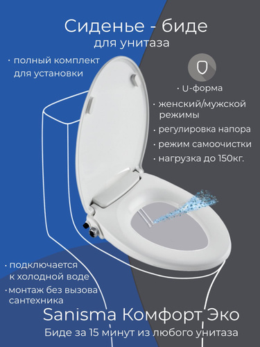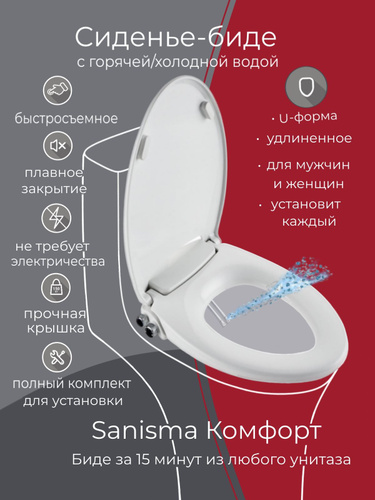 Сиденье-биде с горячей и холодной водой Sanisma Комфорт Удлиненное