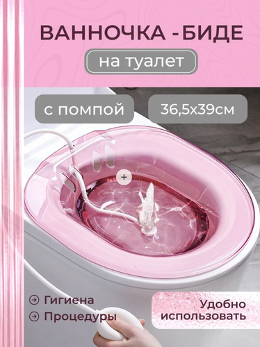 Сидячая ванна, биде, накладка для унитаза, послеродовая, послеоперационная, с помпой, розовая
