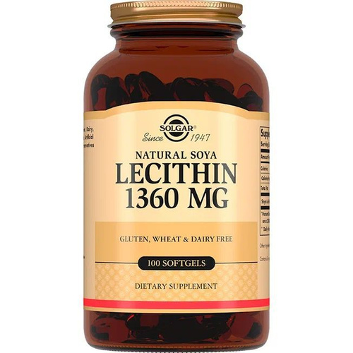 Solgar, Lecithin "Натуральный соевый лецитин", 1360 мг, 100 капсул массой 1930 мг