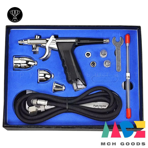 GM Аэрограф 116BK профессиональный комплект: 3 сопла (0.3, 0.5, 0.8 мм), 3 емкости (3, 7, 11cc)