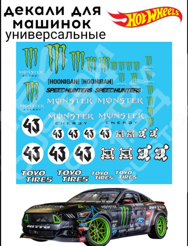 Наклейка D'cor Visuals Racing Совместима с Monster Energy Винил толщиной 4 мил, мотоцикл, кроссовый , MX, шлем, квадроцикл 19"x12"