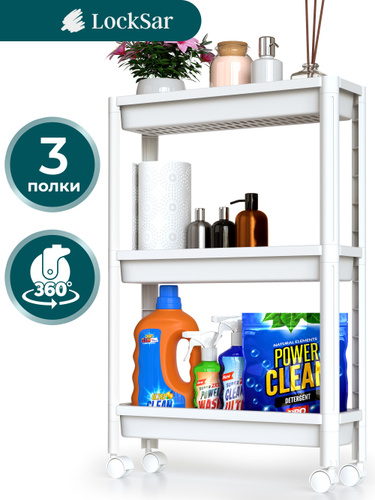 Этажерка для ванной на колесиках LockSar стеллаж для кухни, напольная полка 3 секции HS1002_OZON
