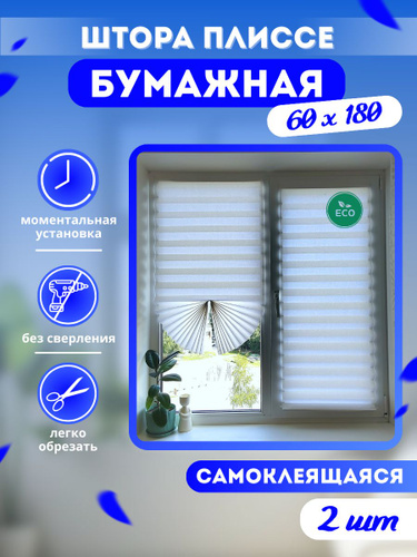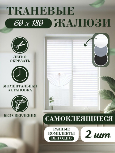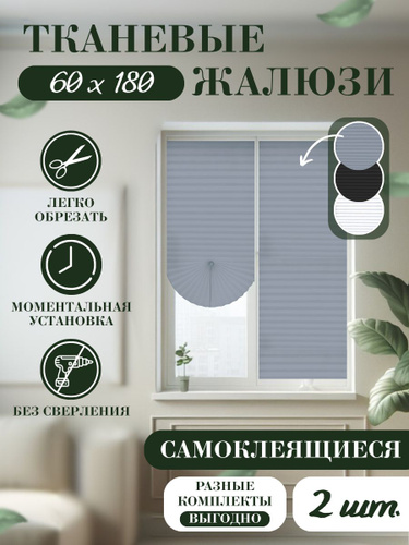Жалюзи тканевые плиссе самоклеящиеся, комплект 2шт, 60*180см, серые I На липучках на пластиковые окна I без сверления I Горизонтальные I