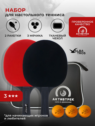 Набор для настольного тенниса 3 звезды АКТИВТРЕК (ракетки 2шт, мяч 3шт, чехол)