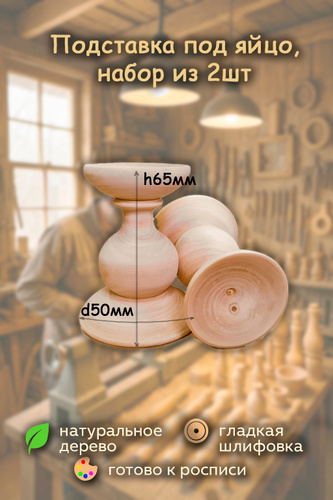 Подставка под яйцо 65*d50мм, деревянная заготовка РуТвор, набор 2шт