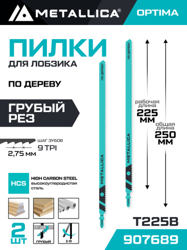 Пилки для лобзика по дереву, ДСП ПРАКТИКА тип T225B 250 х 225 мм, быстрый рез, HCS (2шт.)