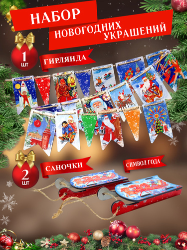 Набор елочных украшений деревянный Гирлянда и санки 2шт