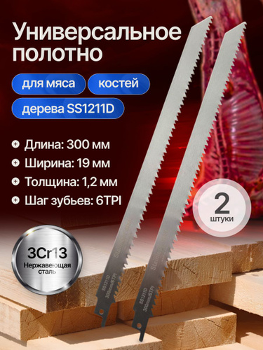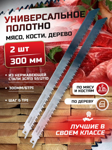 Универсальное полотно 2шт по дереву и мясу 300мм для сабельной пилы SS1211C