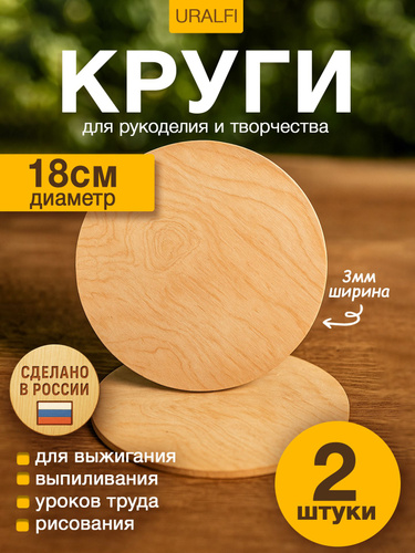 Круглые деревянные заготовки для творчества, Круг для росписи и декорирования 18 см 2шт