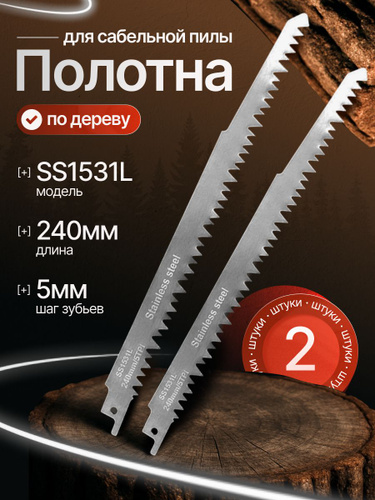 Полотно для сабельной пилы по ДЕРЕВУ 240мм из нержавеющей стали 2шт