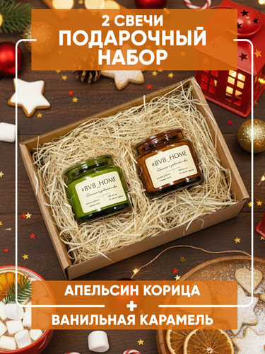 Подарочный набор на новый год 2026 с ароматом Апельсина корицы и Ванильной карамели 2шт. Ароматическая свеча + соль для ванн. Готовый новогодний подарок для женщин, мамы, подруги, коллеги.