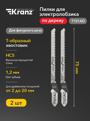 Пилка для лобзика по дереву 75мм, 2шт, T101AO, Kranz
