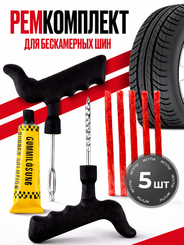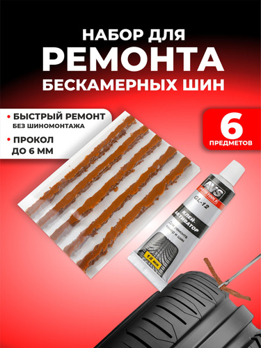 Жгуты для ремонта шин 5 шт 6х100мм + клей для жгутов/ AVS Набор для ремонта бескамерных шин