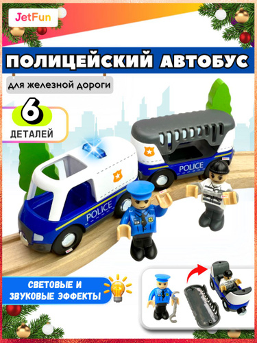 Реалистичный игровой набор для железной дороги с световыми и звуковыми эффектами Полицейский автомобиль, автобус с прицепом и фигурками, развитие воображения