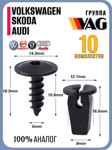Клипсы саморезы для автомобиля Volkswagen Audi Skoda VAG набор 10шт