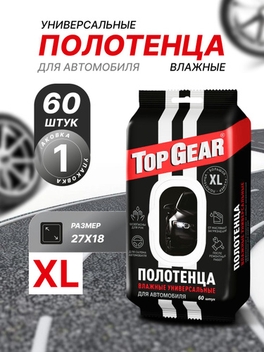 Top Gear Влажные салфетки 60 шт для салона авто, удаление пыли, грязи и запахов, не оставляют следов