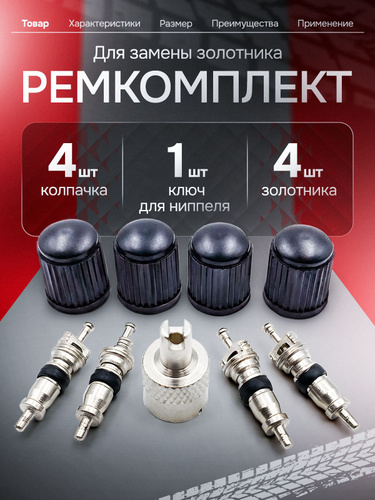 Комплект золотников, колпачков на вентиль, 1 мастер ключ, набор для замены золотников