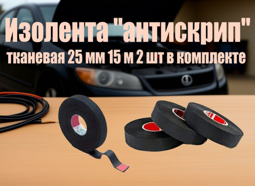 Изолента "антискрип" автомобильная салонная тканевая 25 мм 15 м 2 шт в комплекте