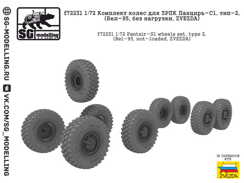 f72231 1:72 Комплект колес для ЗРПК Панцирь-С1, тип-2, (Бел-95, без нагрузки, ZVEZDA)