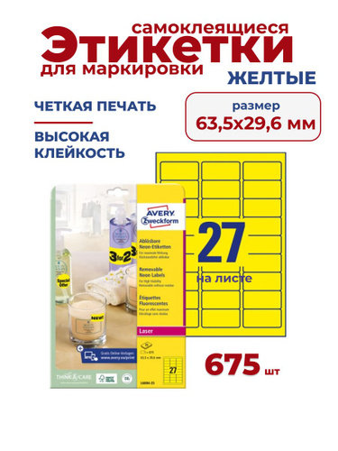 Avery Zweckform Самоклеящиеся этикетки 63,5х29,6 мм, L+CL,желтый неон, 675 шт./уп., 25л