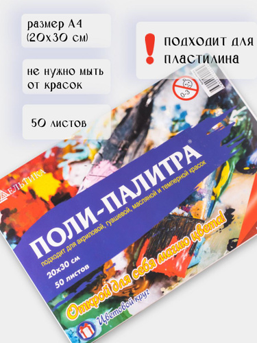Бумажная ПОЛИ-ПАЛИТРА с отрывными листами для смешивания красок / 20*30 см / 50 листов