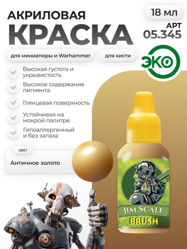 Акриловая краска металлик для сборных моделей под кисть Jim Scale: Античное золото Antique gold 18мл