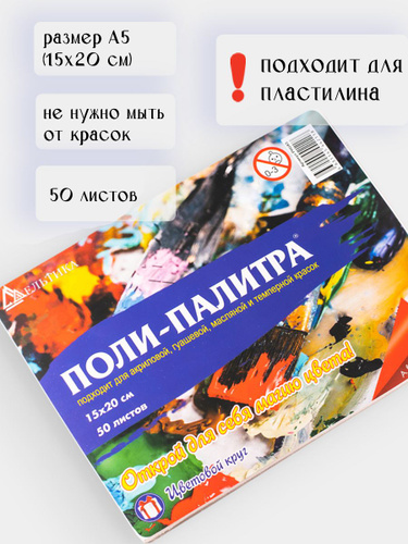 Бумажная ПОЛИ-ПАЛИТРА с отрывными листами для смешивания красок / 50 листов 20*15 см.