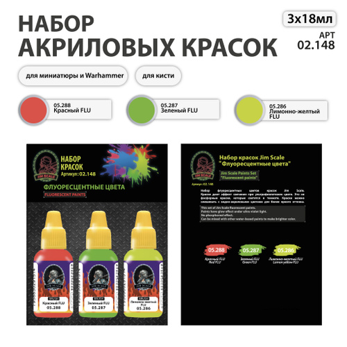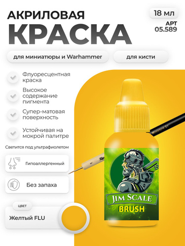Акриловая флуоресцентная краска для сборных моделей под кисть Jim Scale: Желтый Yellow FLU 18мл