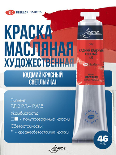 Масляная краска Ладога в тубе 46 мл Кадмий красный светлый (А)