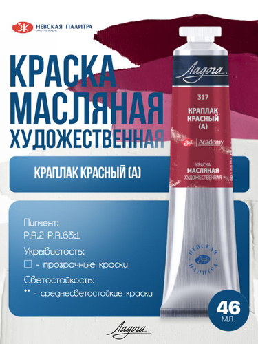 Масляная краска Ладога в тубе 46 мл Краплак красный (А)